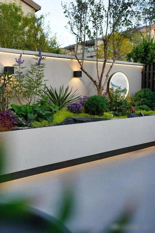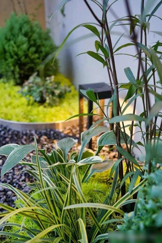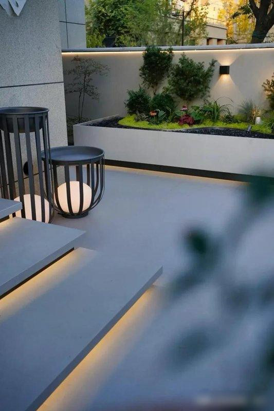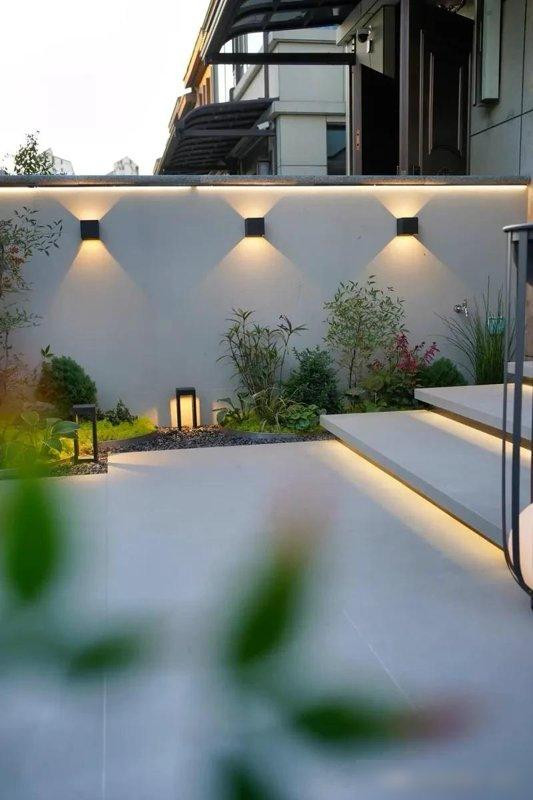 我同事做了个黑白极简花园,晚上跟鬼屋似的,连狗都不敢进——灯光是花园的「灵魂眼镜」,得选暖光,柔一点,才能出氛围感。